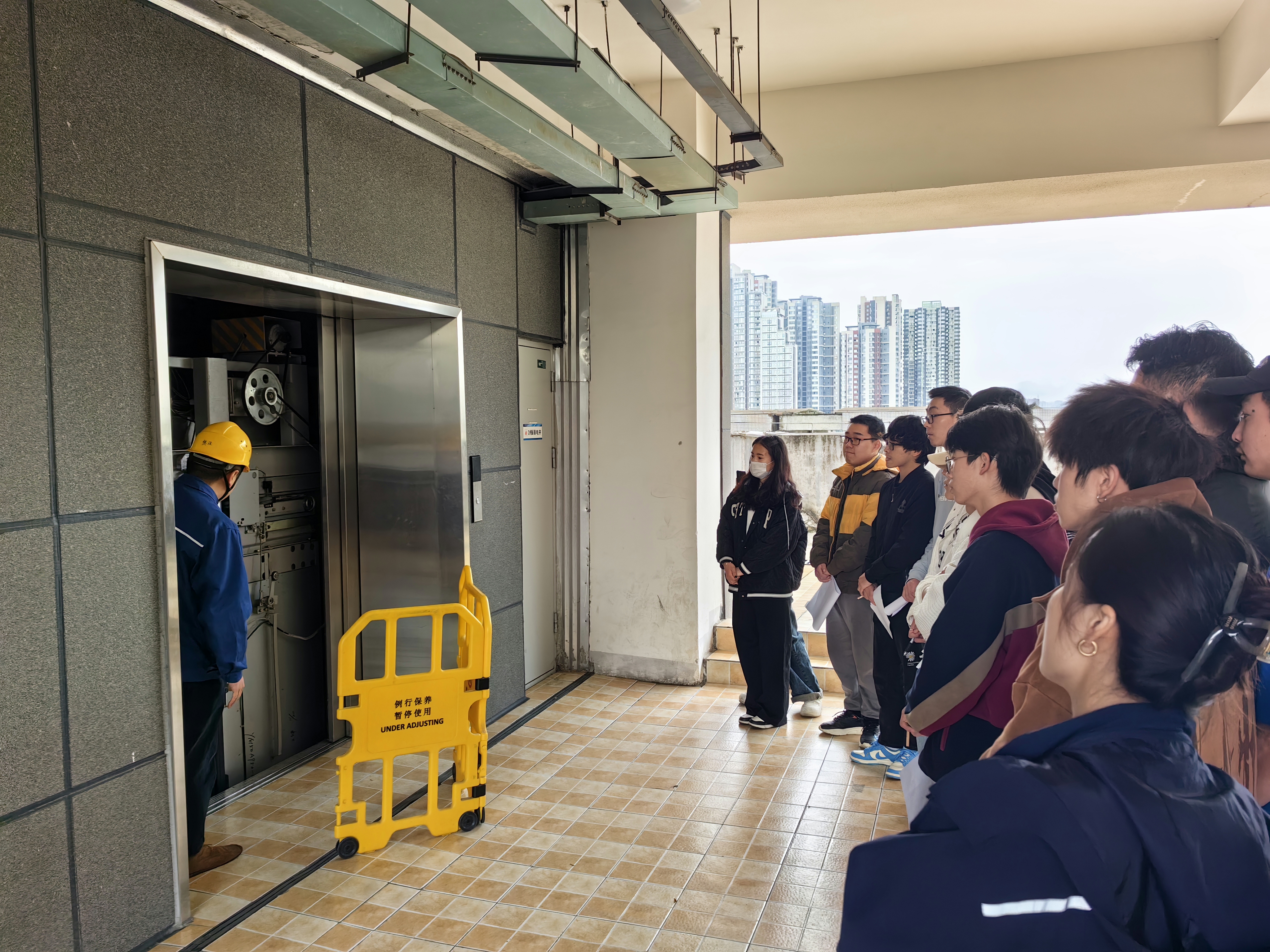 3月27日,yl7703永利集团邀请上海三菱电梯有限公司四川分公司余良等3名工程师为公司员工讲解电梯维保相关知识。公司专业教师张雪标、梁毅带领班上员工在维保现场观摩了此次电梯维保全过程。