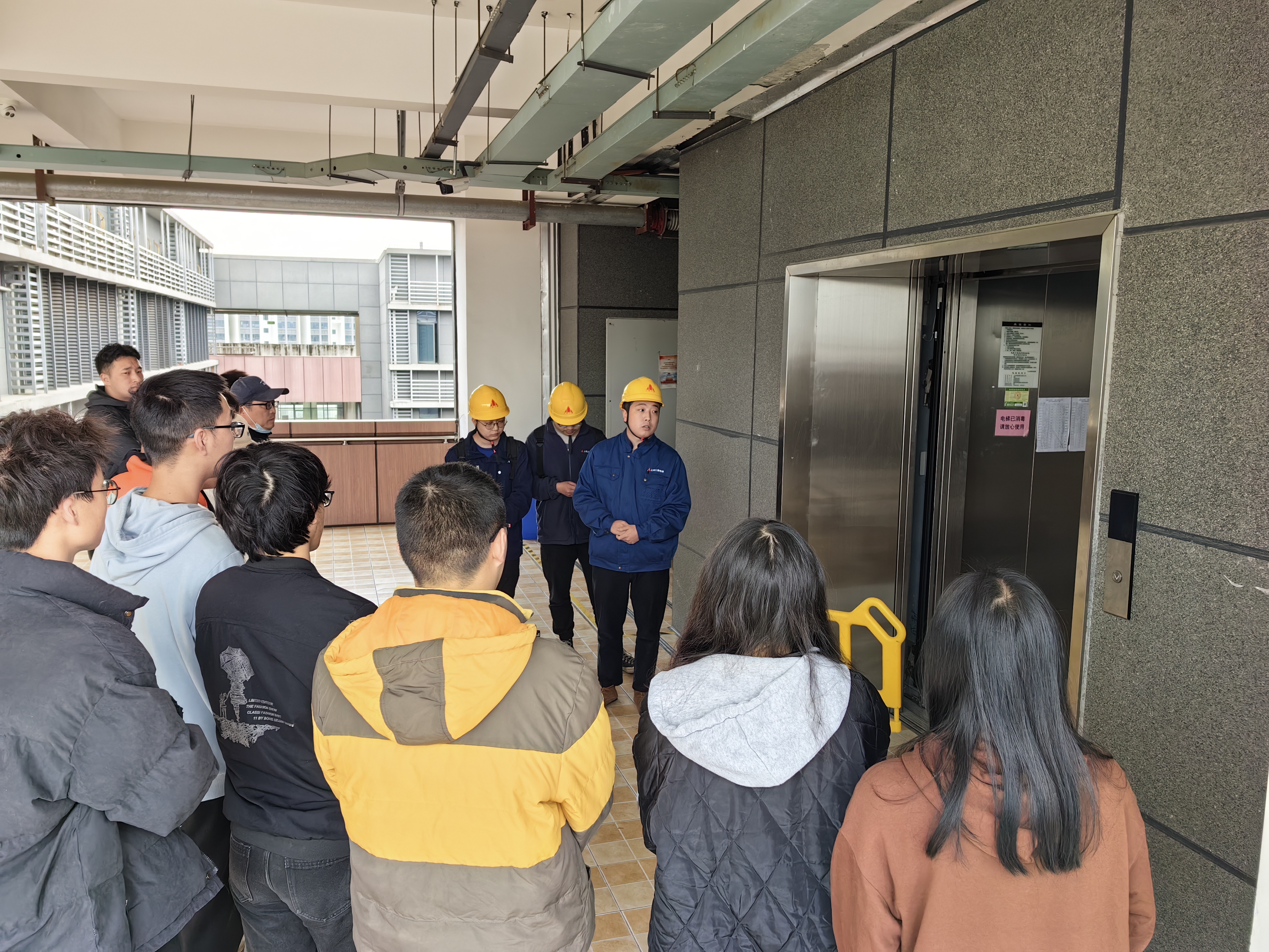 现场,余良讲解了电梯主要部件、构造原理、各子系统的功能,并详细介绍了电梯运作过程、维保过程中的注意事项,这让同学们大开眼界。同时,作为公司毕业生的余良还分享了求职的心路历程、由员工转变为职场人的心得和在电梯公司的工作体会,同学们与学长积极互动,收获满满。
